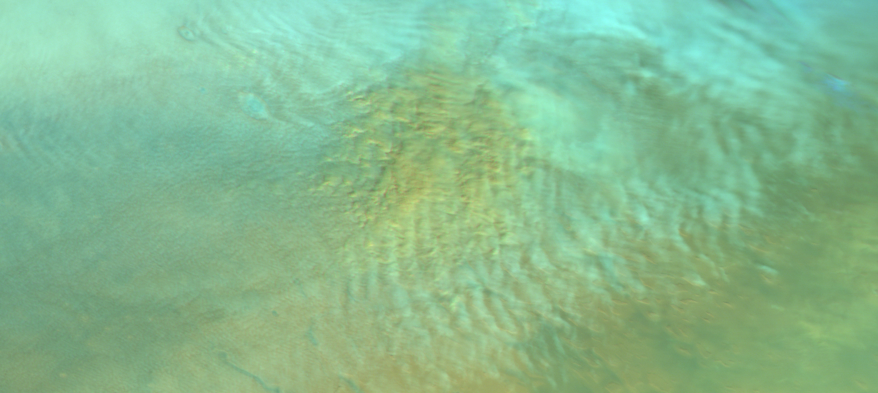 Cirrus clouds at SE Amazonis Planitia (Aureole to MFF) (best visible in blue; other channels overexosed). Map.
